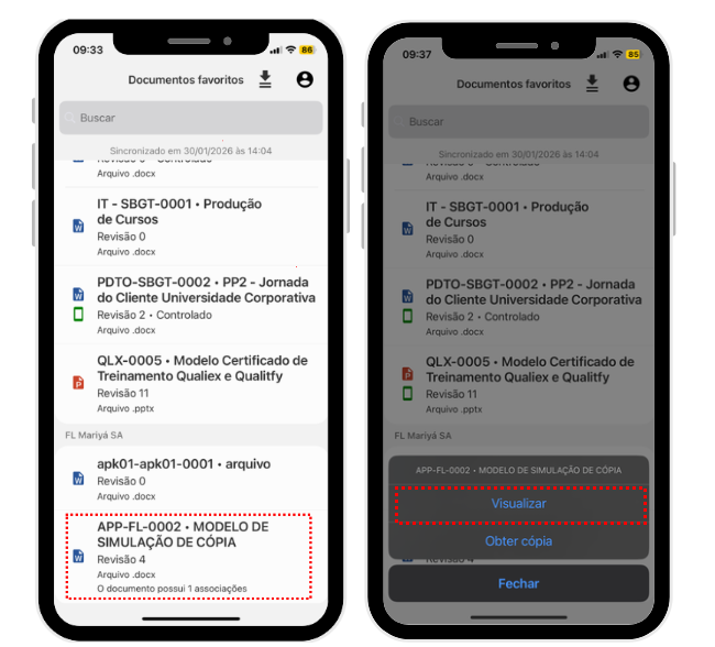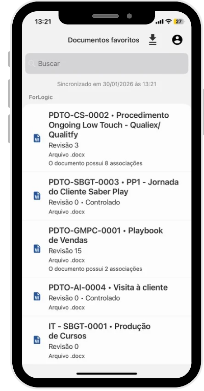 Conectado à internet, acesse o aplicativo no seu dispositivo e aguarde a sincronização dos documentos.