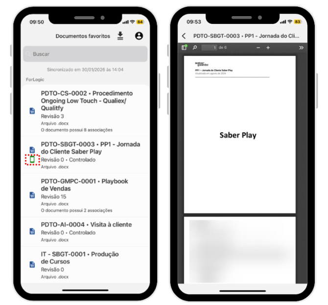 Quando não temos conexão com a internet podemos visualizar somente os documentos que já obtemos cópia no dispositivo.🔎Clique aqui para saber mais sobre Como obter cópia de um documento controlado no Aplicativo do Docs?
