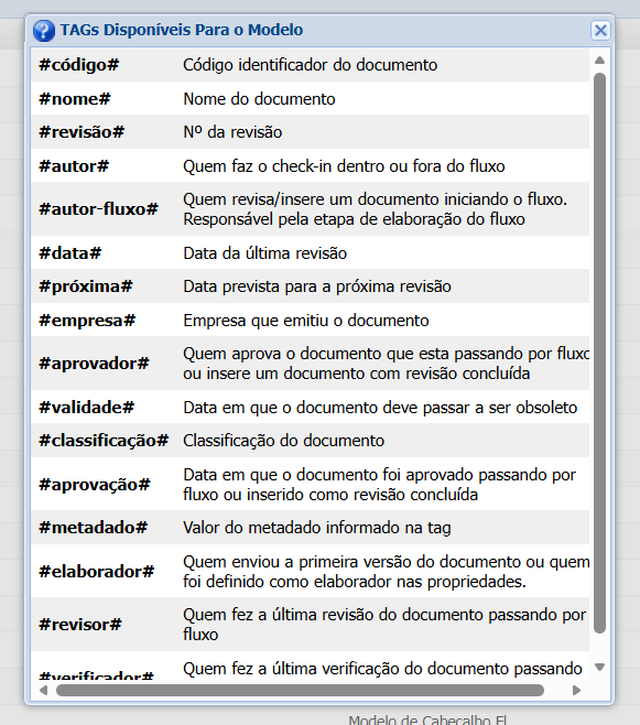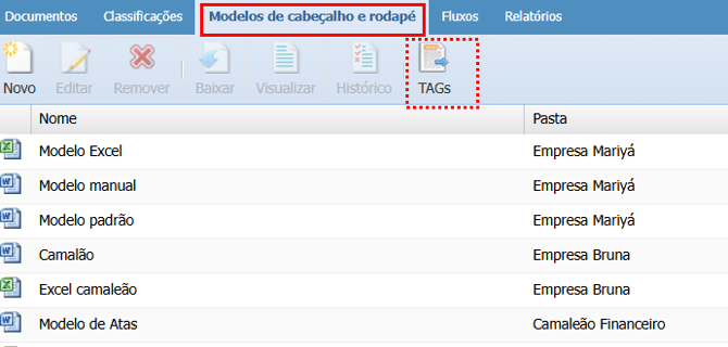 Podemos colocar TAGs no cabeçalho e rodapé, assim os dados dos documentos são inseridos automaticamente.