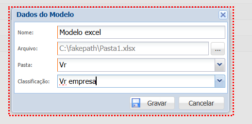 Classificação: A qual classificação o modelo será vinculado. Selecionando “Não Informado” é aplicado a todas as classificações.