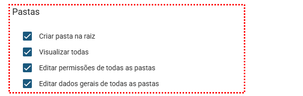 Editar permissões de todas as pastas : O usuário pode alterar quem acessa cada pasta e quais ações podem ser realizadas nela.