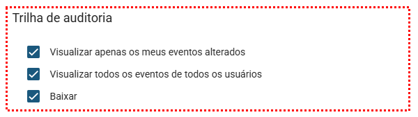 Visualizar apenas os meus eventos alterados : Permite ver somente as ações que o próprio usuário realizou.