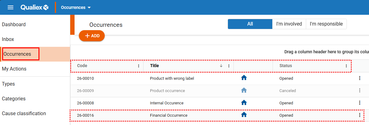 The action of taking ownership of an occurrence can be performed in two ways: through the occurrence list or directly within the occurrence record.