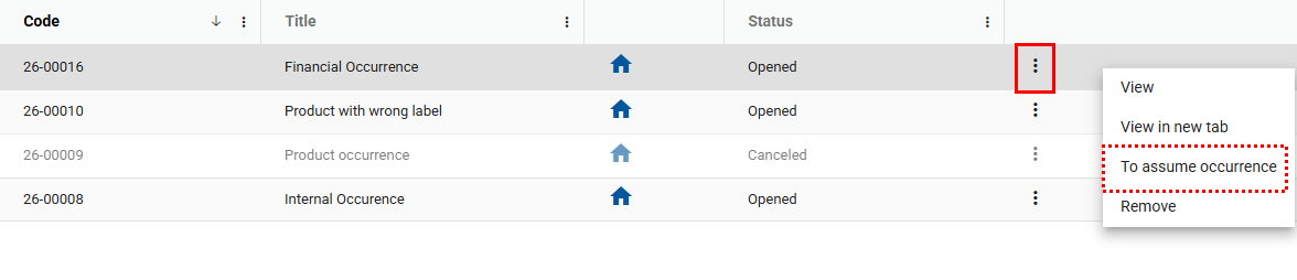 If you are a member of the responsible group, the option “To assume occurrence” will be available. Selecting this option assigns the occurrence to you as the individual responsible.