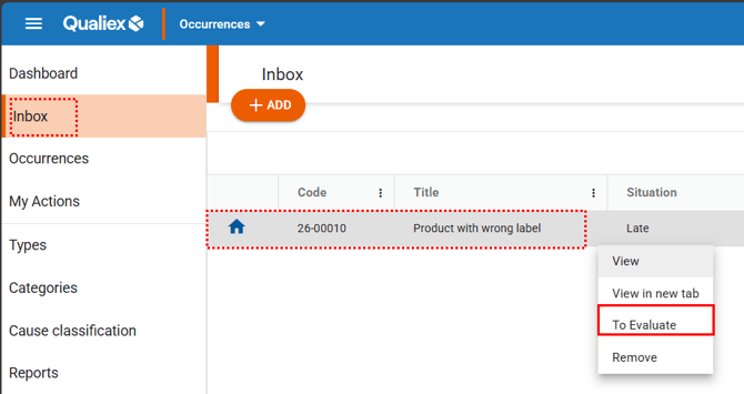 Click on the “Inbox” tab. Next, right-click on the desired occurrence, or click on the context menu and select “Evaluate”.