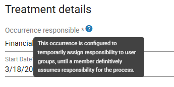 Occurrence responsible(mandatory): This is the employee responsible for ensuring the overall management and treatment of the occurrence.