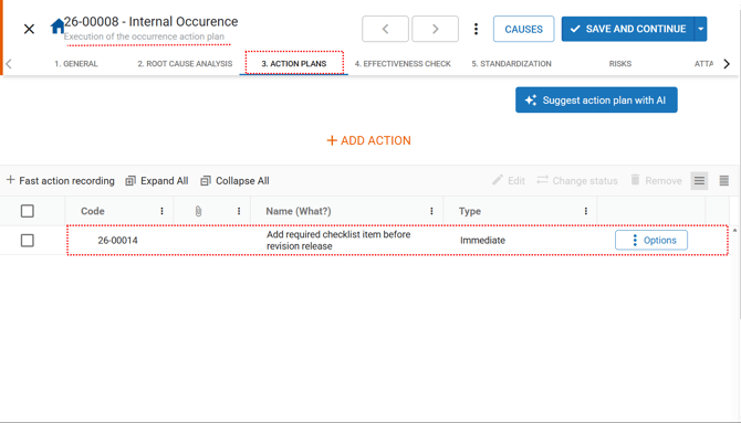 An approved occurrence, with the root cause identified and the action plans defined, requires the execution of the plan in order to be effectively completed.