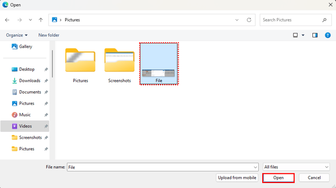 Select the desired file and then click “Open” to upload it to the system.