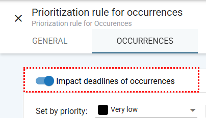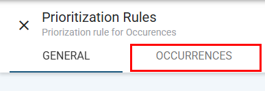 Next to the General tab of the prioritization rule, you will find the Occurrences tab. This is where you configure how the prioritization rule will be applied to occurrences within the system.