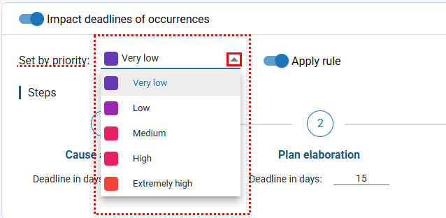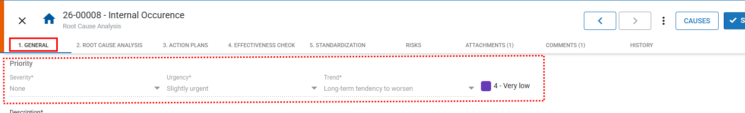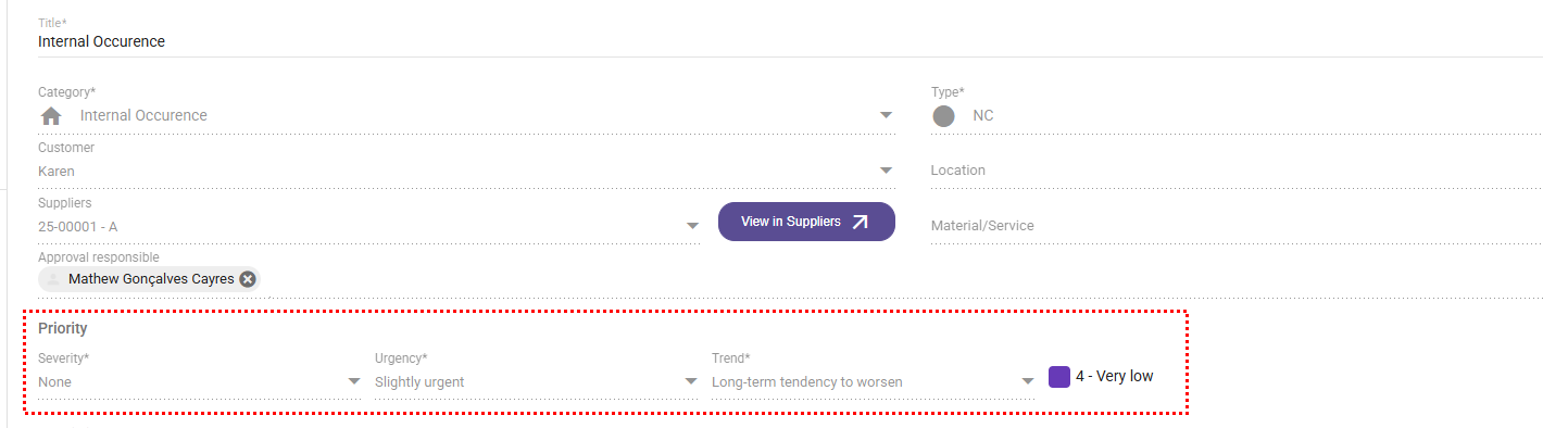 Based on the values selected, the system automatically calculates the occurrence priority.