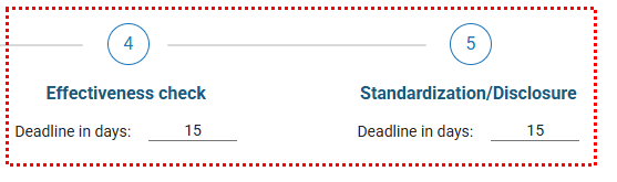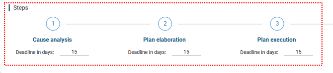 Define the deadlines (in days) for each stage of the occurrence (e.g., Root Cause Analysis, Action Plan Elaboration, etc.).