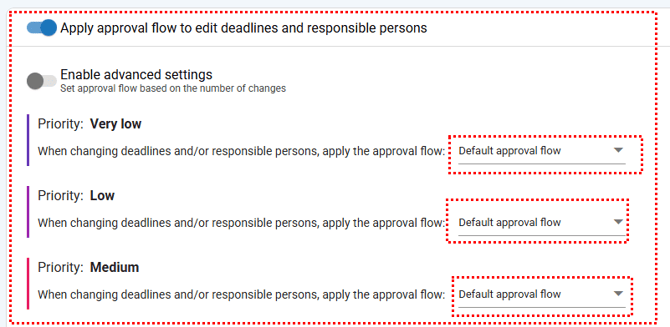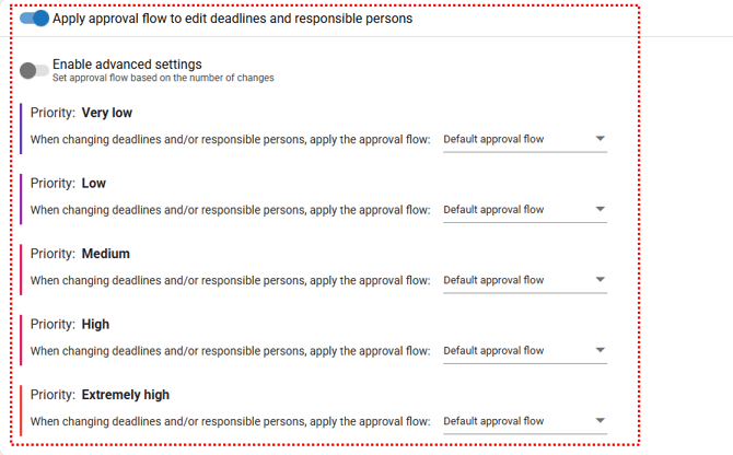 Once enabled, any attempt to change deadlines or responsible parties in the occurrence will require approval through an approval flow.