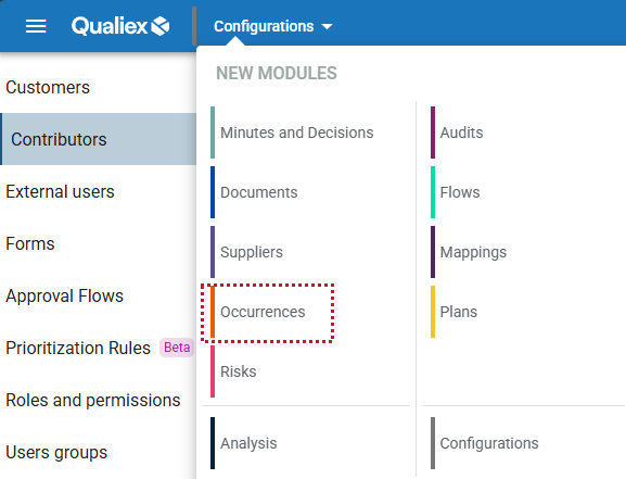 To apply a prioritization rule to occurrences: Access the Contracted Modules menu and select the Occurrences module.