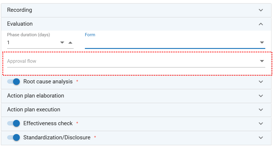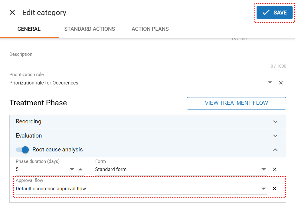 After selecting the category, an editing window will be displayed. Inside it, access the “Treatment Steps” tab, locate the “Approval flow” option, choose the flow previously created, and link it to the desired category.