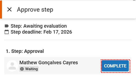 When clicking “Approve step,” a window will open for the user to approve or reject the step.