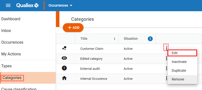 How to Create Standard Actions for Occurrences in Qualiex?