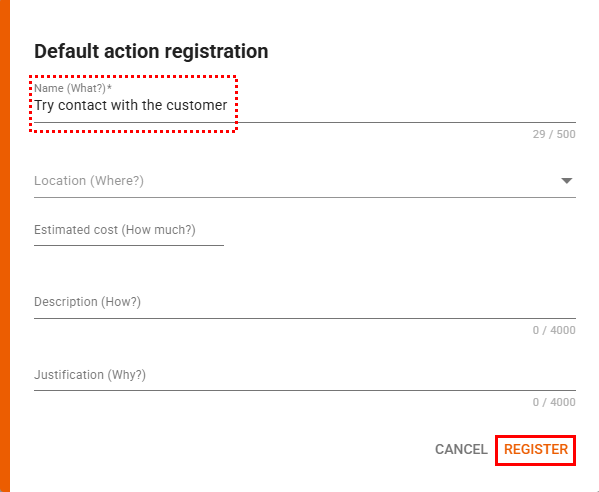 Fill in this mandatory field with a clear and objective title describing the action to be performed. This ensures that the person responsible can execute it accurately and effectively. -