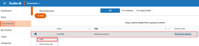 When you open the occurrence, the system automatically directs you to the current step that needs to be completed