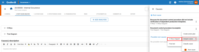 How to deepen the cause analysis of an occurrence using the 5 Whys in Qualiex?