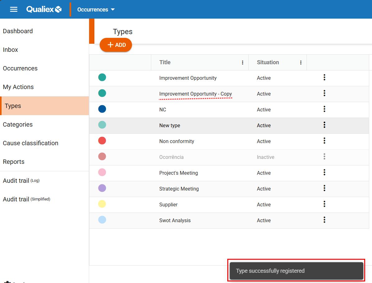 - Types and Categories of occurrences in Qualiex: what they are and what they are used for