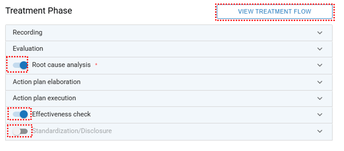 Only the following steps can be disabled: Cause Analysis, Effectiveness Check, and Standardization/Disclosure.