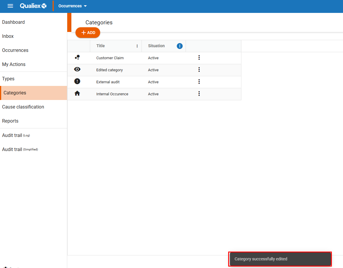 When you click “Save,” the category will be updated, and a confirmation message for the edit will appear: