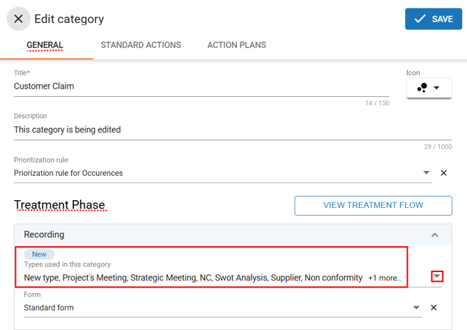 This configuration is done directly in the Categories tab, allowing each category to have the appropriate types according to its characteristics.
