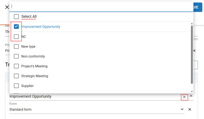 Select the desired type by clicking the checkbox