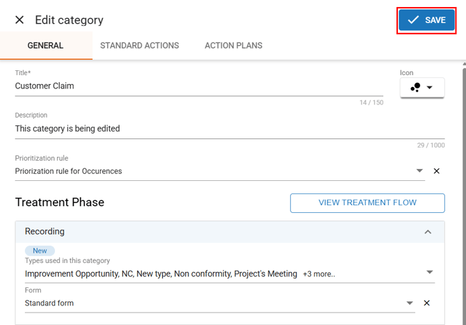 When you select the “Edit” option, a window will open allowing you to make changes to the category. In the “General” tab, locate the “Treatment Phase.”