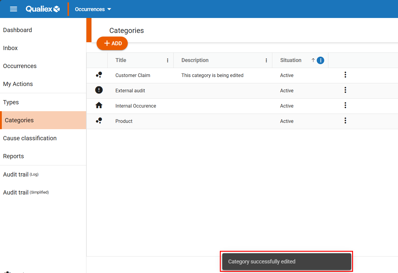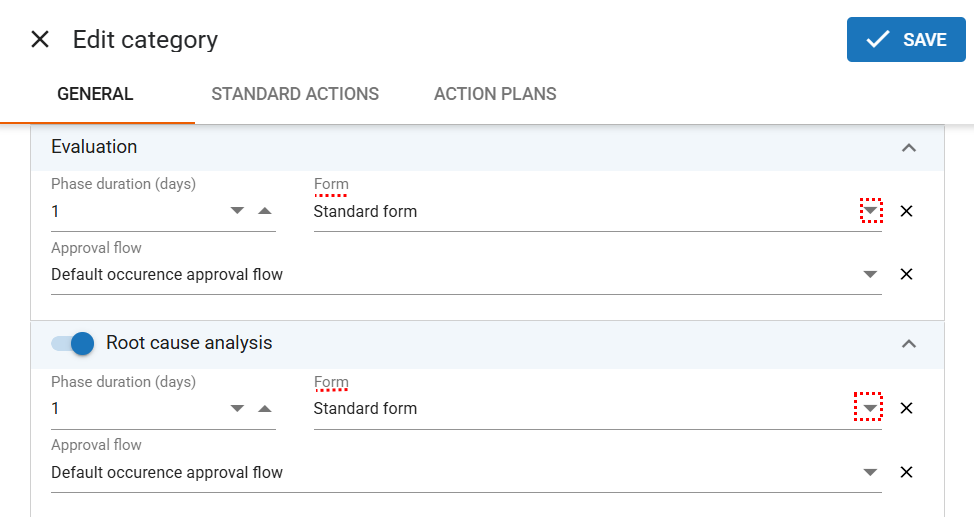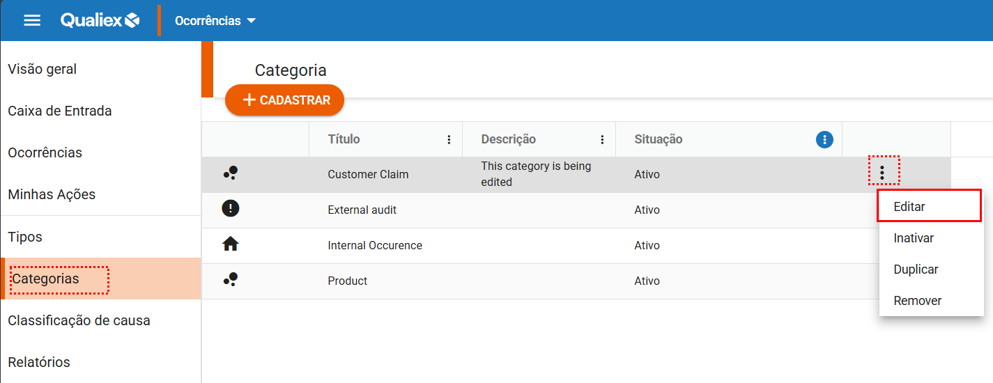 This configuration is done directly in the Categories tab, allowing each category to have its own form linked to its treatment steps, depending on the category’s particularities.