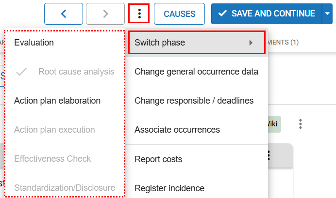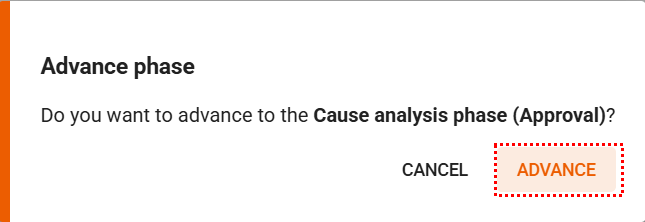If the cause analysis tools have been set as mandatory in the Occurrences module settings, it will be necessary to complete the required analysis tools before advancing to the next steps.