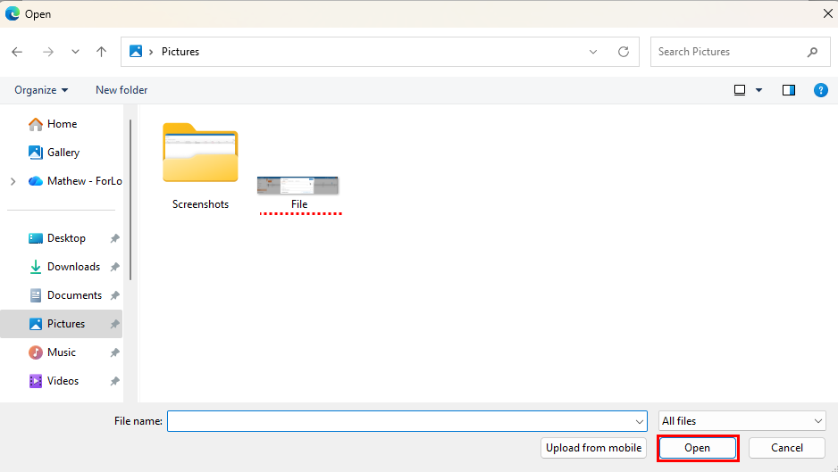 Locate a file by name by clicking 6-2, sort from A to Z, or sort by the oldest uploaded files.