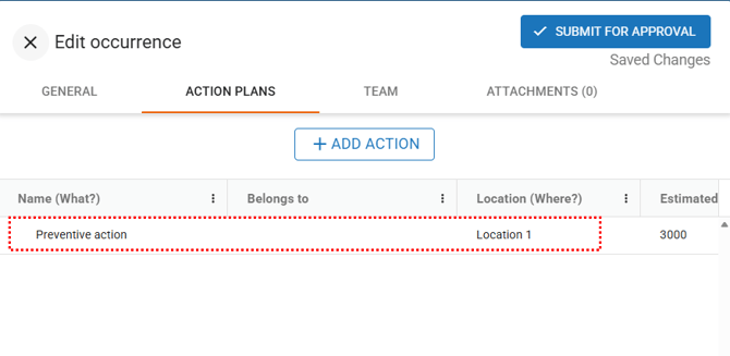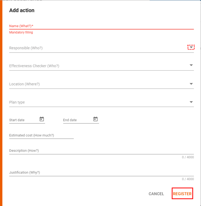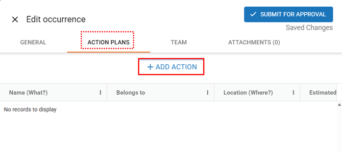 In the Action Plan tab, you can register the immediate actions that have been carried out or are currently in progress.
