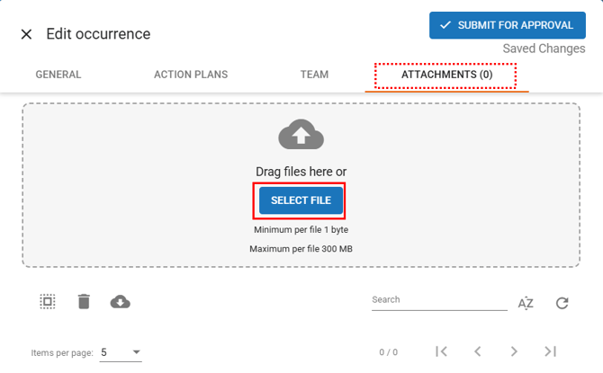 In the Attachments tab, you can upload all the documents necessary to provide evidence related to the occurrence.