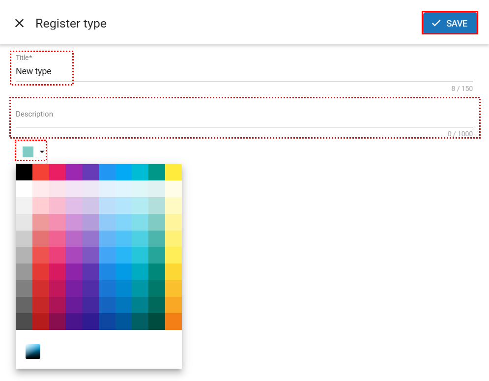 - Title: Enter the name of the type being registered (this field is mandatory and has a limit of 150 characters).