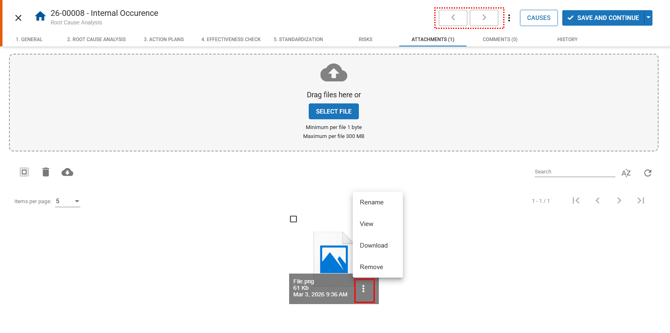 To access the Attachments tab, use the arrow located in the upper‑right corner