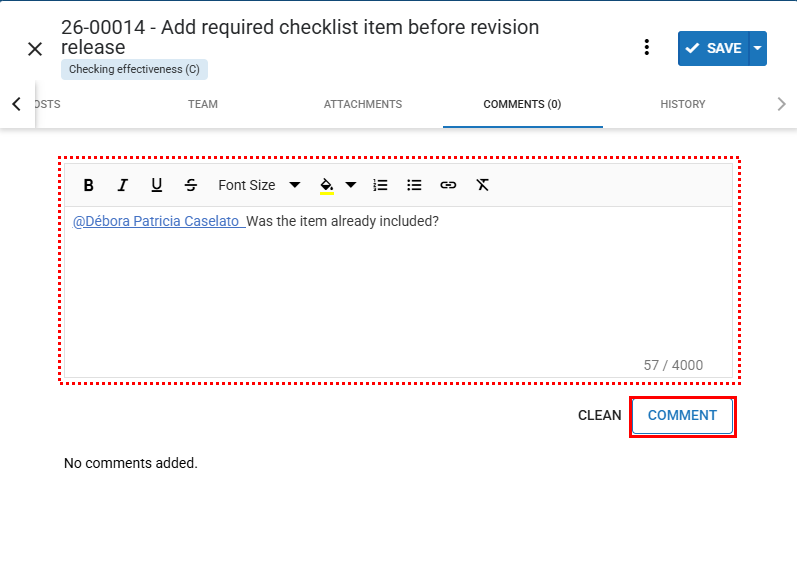 To improve communication among users regarding the action, it is possible to register comments.
