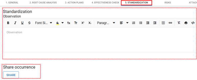 To perform the standardization and communication step, the user must be responsible for the step, responsible for the occurrence, or have the “Edit All” permission defined under Configurations > Roles and Permissions.