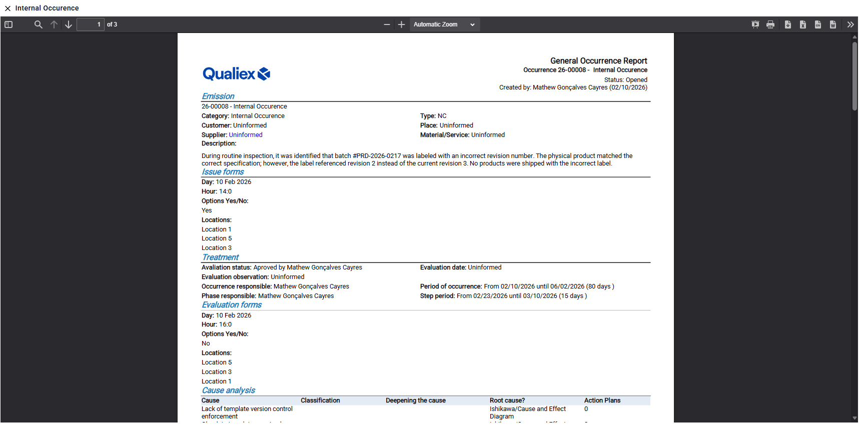 Allows full monitoring of the occurrence’s history—from creation to standardization—making it ideal for audits and reviews.
