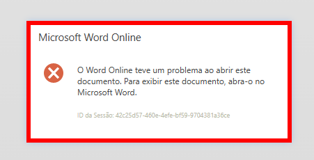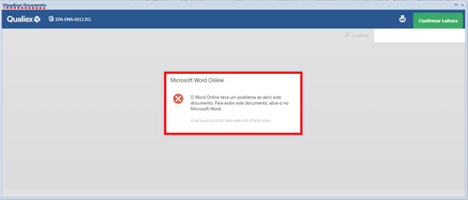 No entanto, quando um hiperlink está presente no documento, isso pode gerar conflitos. Como resultado, ao tentar visualizar esse documento, o sistema pode apresentar uma mensagem de erro semelhante à imagem exibida abaixo.