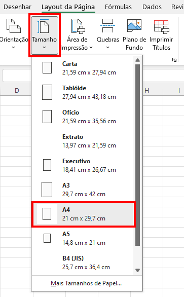 O documento do Excel deve estar sempre configurado no tamanho A4. Se estiver em outro tamanho, o sistema pode não conseguir processar corretamente e acabará gerando erro. Além disso, margens muito grandes, irregulares ou fora do padrão também podem causar falhas na leitura do arquivo.