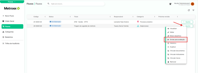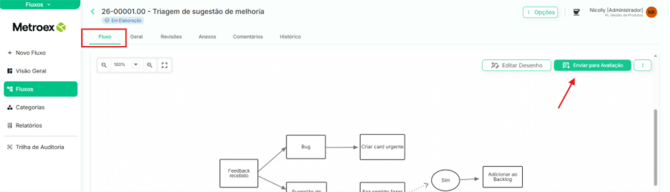 ⚠️ Quem pode enviar: Apenas o usuário com permissão de Editar todos os fluxos.