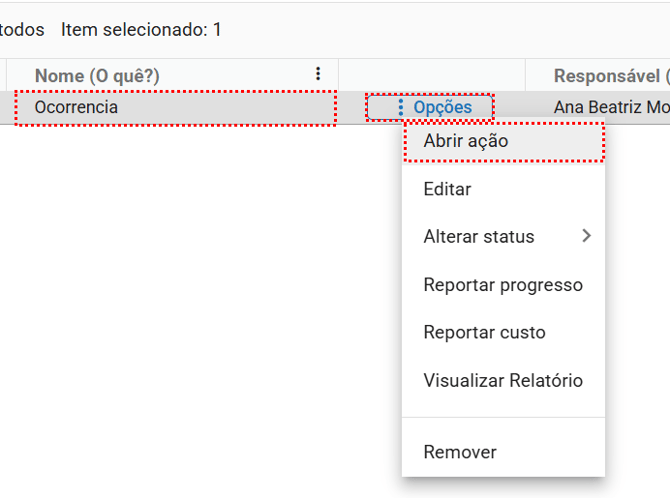 , e selecione a opção "Abrir ação".