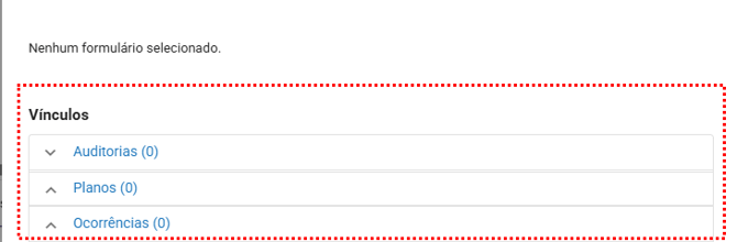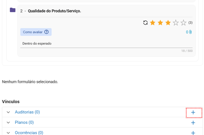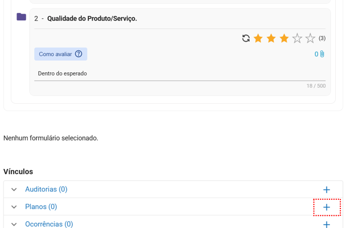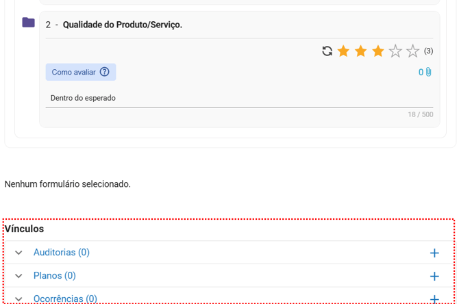 A avaliação possui vinculo com os módulos Auditorias, Planos e Ocorrências