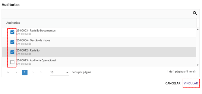 Selecione as caixas de seleção das auditorias e clique em ![]()