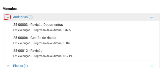 Após vincular os itens necessários, eles estarão disponíveis para visualização. Ao clicar na seta, você poderá ver os detalhes do item.