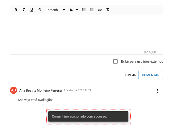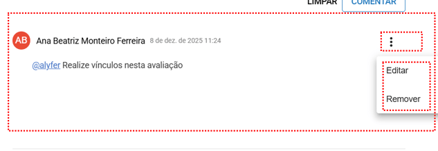 - Editar um comentário já registrado, caso precise corrigir ou complementar a informação.