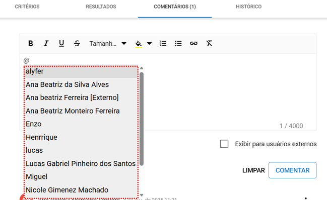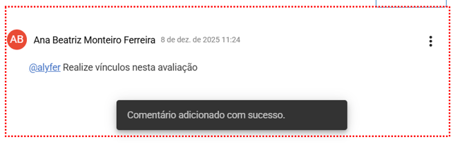 💡 Use as menções para direcionar tarefas, solicitar validações ou reforçar pontos importantes. Isso torna a comunicação mais ágil e centralizada dentro do sistema.