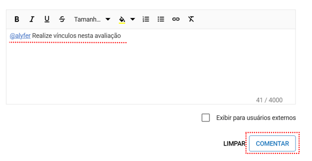 - Para mencionar alguém, digite @ seguido do nome do colaborador.