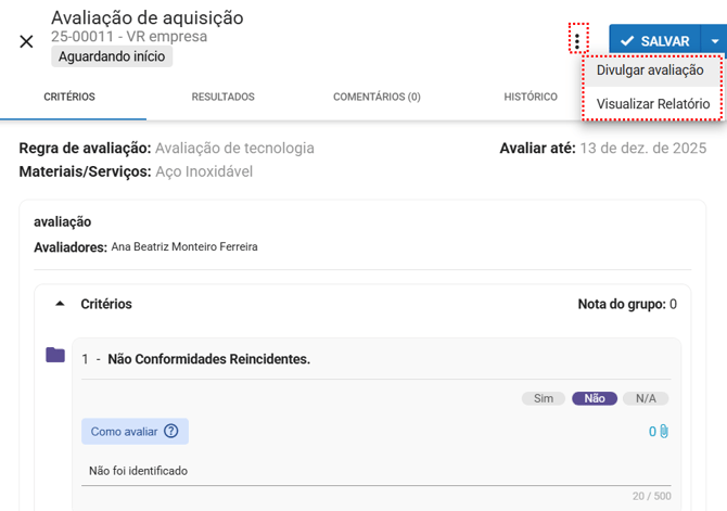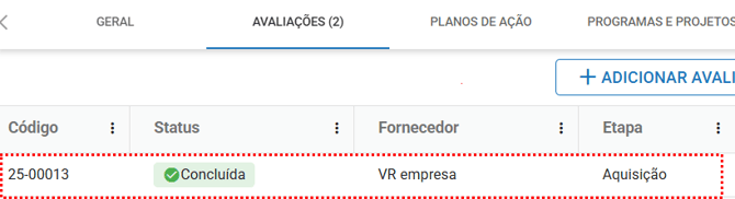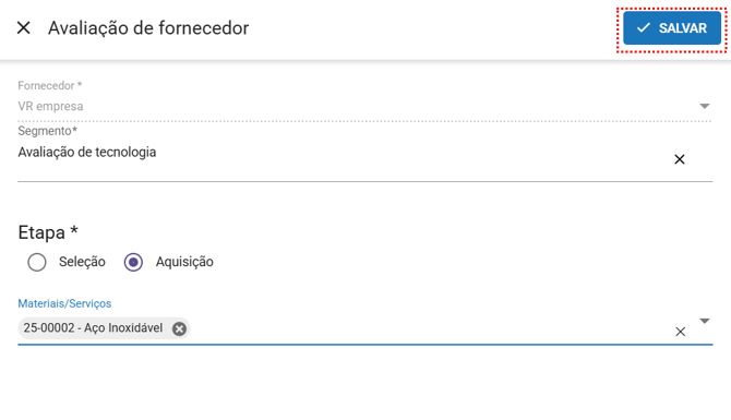Após definir todas as informações para a avaliação do seu fornecedor, clique em